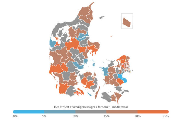 Opgørelsen viser, at der er store forskelle på, hvor flittigt kommunerne deler fyresedler ud. I de kommuner, der har haft færrest afskedigelsessager, svarer antallet af sager til omkring godt 2 procent af FOAs medlemmer i social- og sundhedssektoren, mens tallet i de værste kommuner ligger helt oppe på 27 procent.